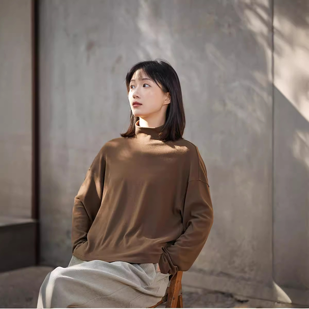 | nameOriginal | Artistic retro casual women's clothing spring, autumn and winter modal small turtleneck versatile knitted bottoming shirt long sleeve T-shirt |