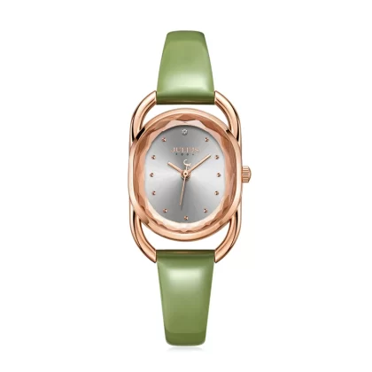 | nameOriginal | Authentic Julishi Korean version retro oval lace cut mirror bright leather grass green elegant ladies watch female watch |