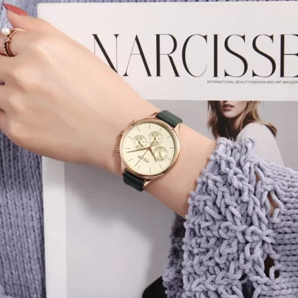 Authentic Julishi women's watch with large dial Korean version fashion trend three eyes student female watch strap waterproof watch