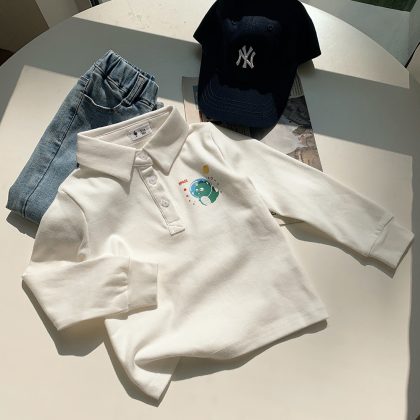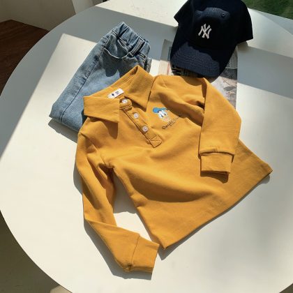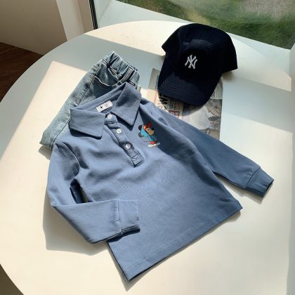 Autumn 2022 Korean Style New Boys Cotton Top Children's Cotton polo Long Sleeve Children's Lapel Top T-shirt