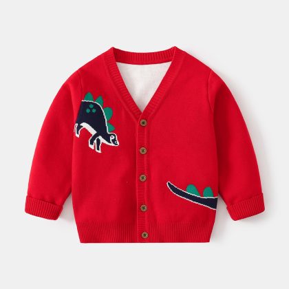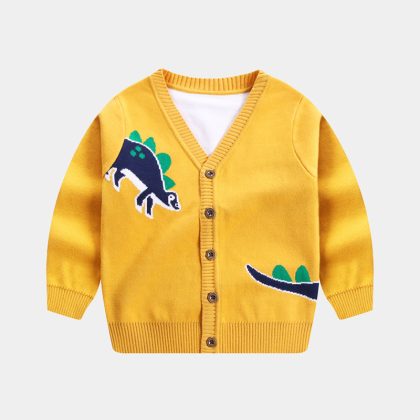 Autumn 2023 Korean style new boys' sweater cardigan children's dinosaur sweater baby casual top children's clothing wholesale
