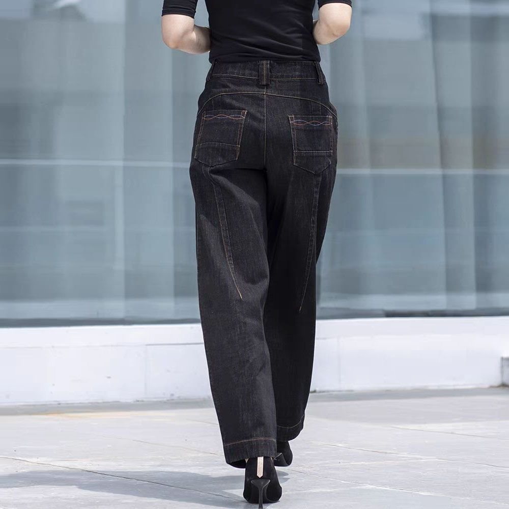Autumn 2023 New High Waist Slimming Jeans Women's Bloomers Women's Wide Leg Trousers Radish Pants Loose Black