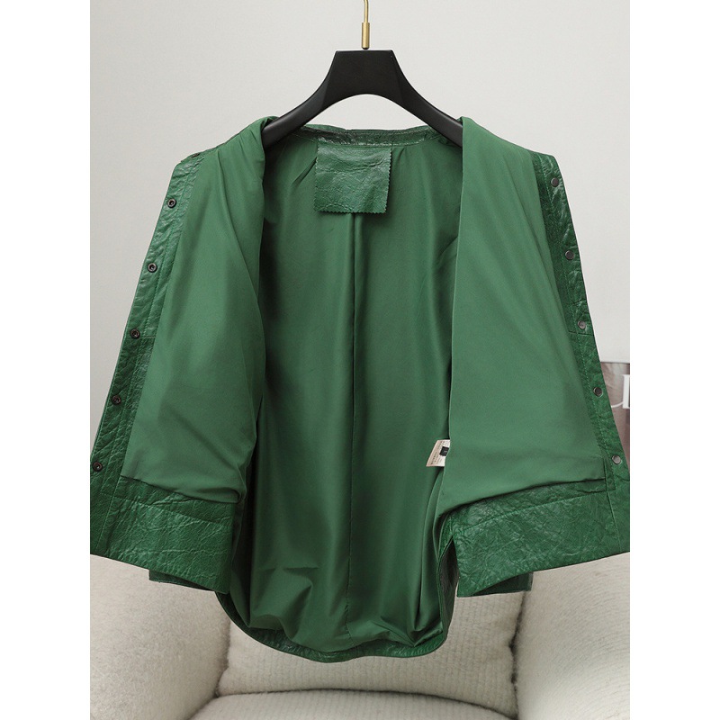 خريف 2024 جديد وصول جلد الغنم الشمع الزيتي جلد طبيعي المرأة قصيرة جلد الغنم معطف جلد صغير سترة