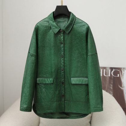 Autumn 2024 New Arrival Oilwax Sheepskin Genuine Leather Women's Short Sheepskin Petite Leather Coat Jacket