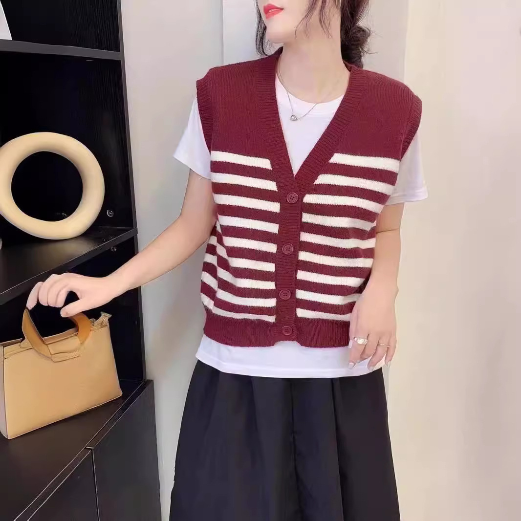Autumn 2024 New College Style Loose Black and White Striped Knitted Cardigan Women's Short Vest Outer Wear Inner Sweater