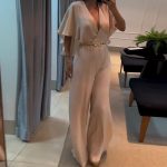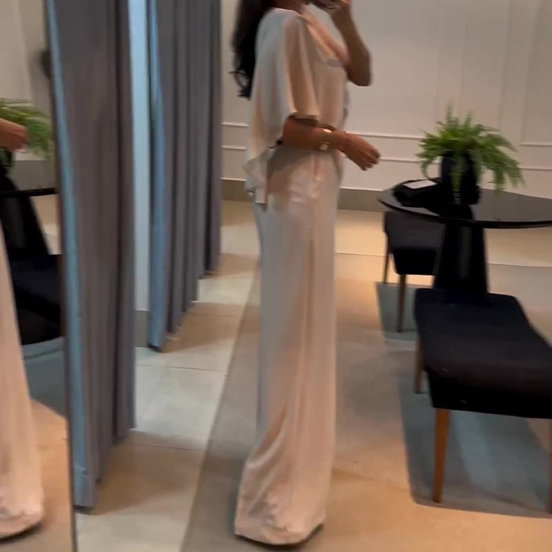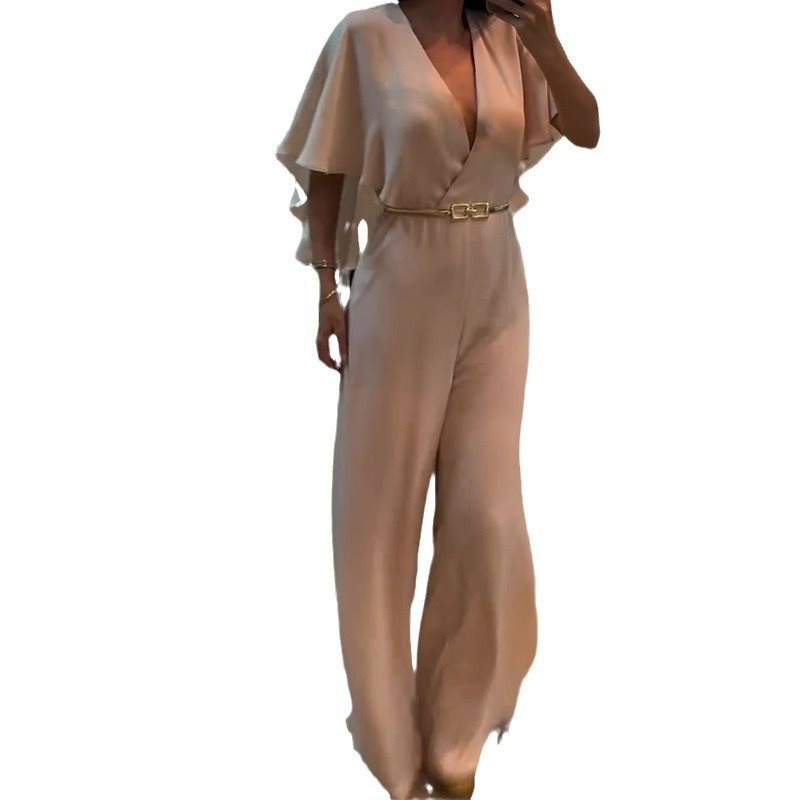 | nameOriginal | Autumn 2024 New European and American Amazon Explosions V-neck Bat Sleeve Solid Color High Waist Slim-fit Wide Leg Pants for Women |
