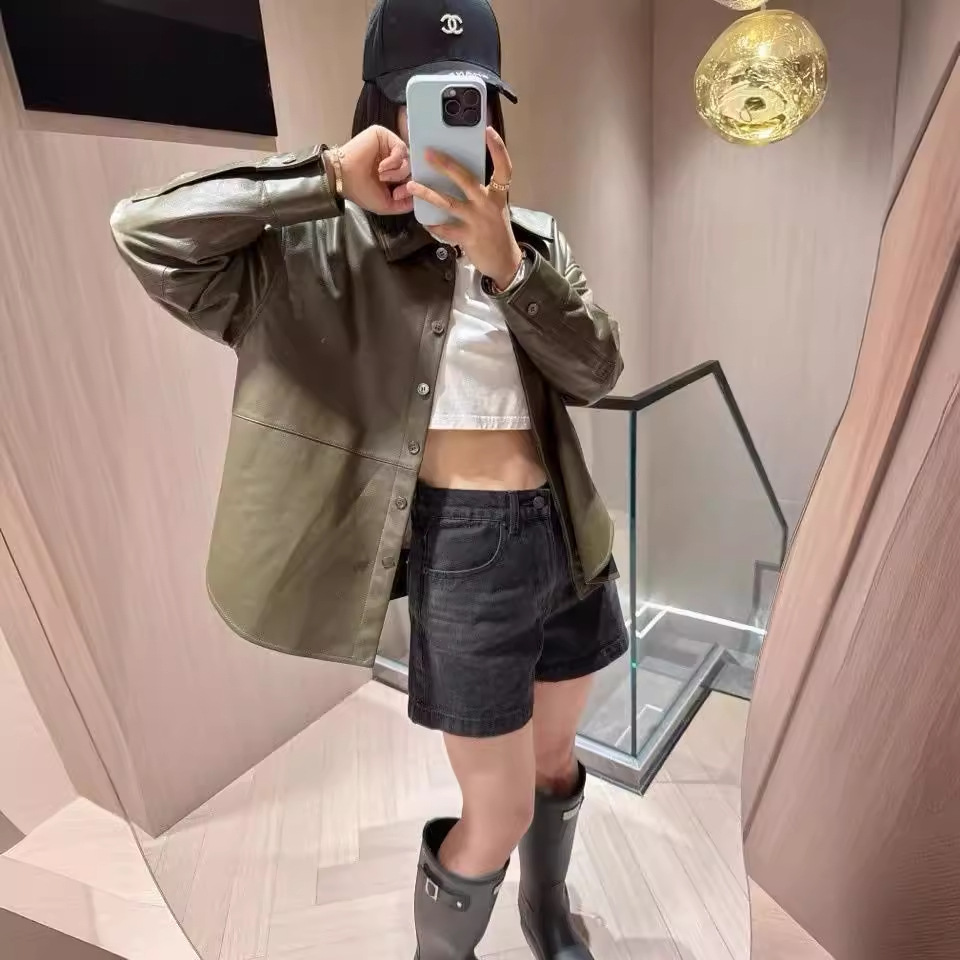 | nameOriginal | Autumn 2024 New Retro Green Loosen Shirt Collar Lambskin Coat Academy Style Side Slit Age-reducing All-match |