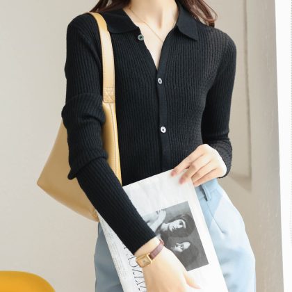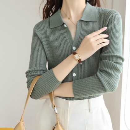 | nameOriginal | Autumn 2024 New Solid Color All-match Fashion Slim-fit Slimming Top Niche POLO Lapel Knitted Cardigan Women |