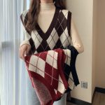 | nameOriginal | Autumn and winter 2024 new diamond v-neck vest knitted vest sweater women's wear retro waistcoat waistcoat |
