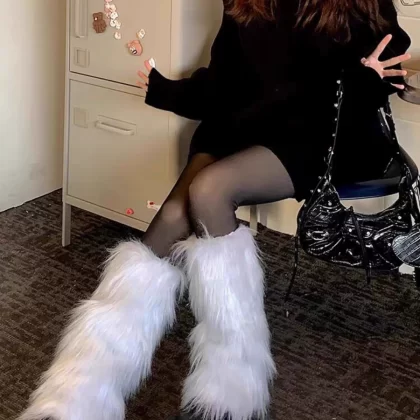 | nameOriginal | Autumn and winter bow tie furry leg sleeves mid-tube y2k hot girl super thick imitation fur calf socks warm socks for women |