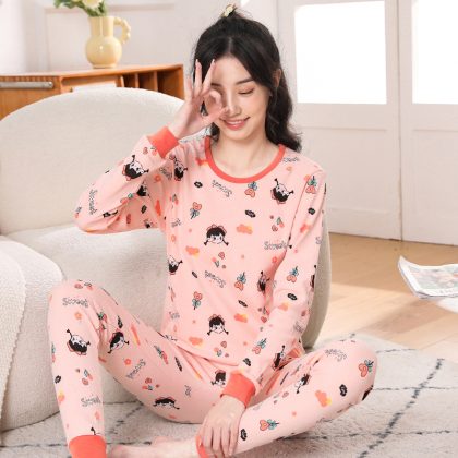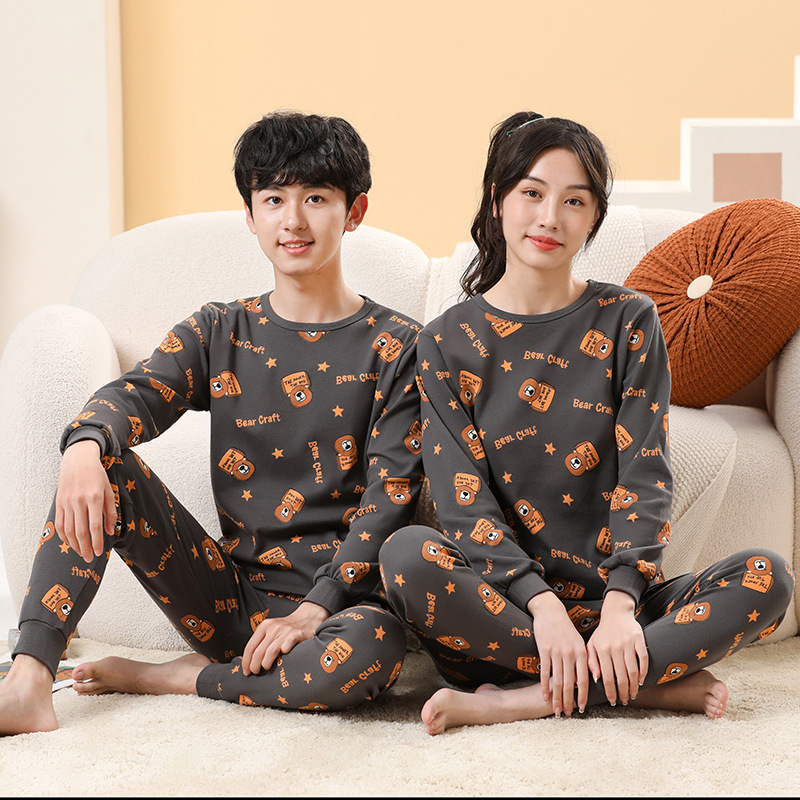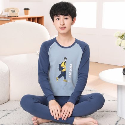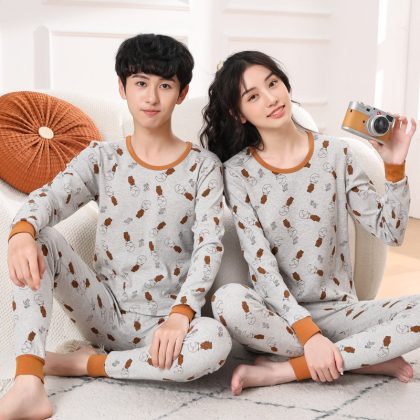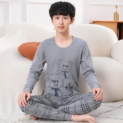 ملابس داخلية قطنية للأطفال للخريف والشتاء تناسب المراهقين ملابس منزلية كرتونية بيجامات للأولاد والبنات ملابس خريفية سراويل طويلة