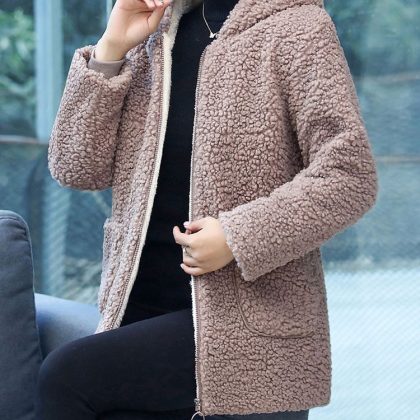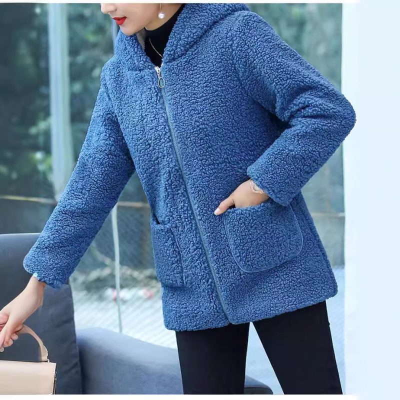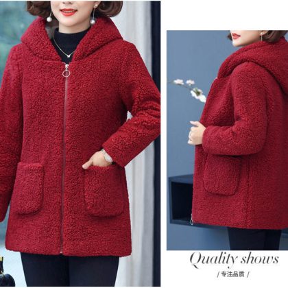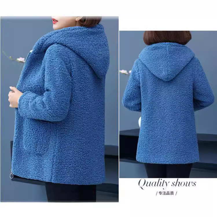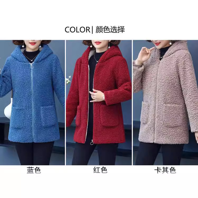 nameOriginal | Autumn and Winter Coat Cotton-padded Clothes Middle-aged Women's Clothing Design Sense Fashion All-match Middle-aged and Old Women's Hooded Lambskin Coat Women |
