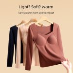 قميص علوي حراري بدون خياطة للخريف والشتاء مع وسادة صدر عالية المرونة ودرجة حرارة ثابتة وأكمام طويلة ملابس داخلية حرارية للنساء مقاس كبير