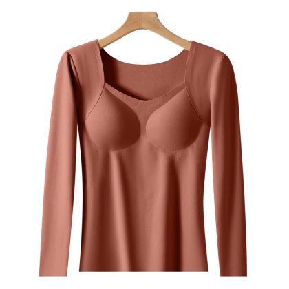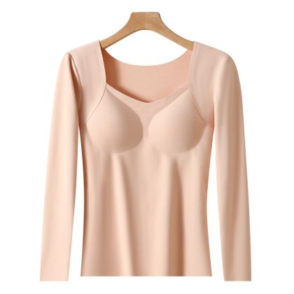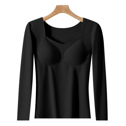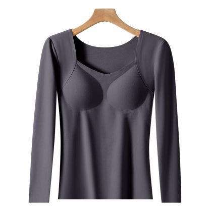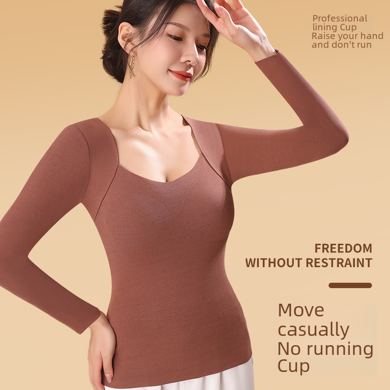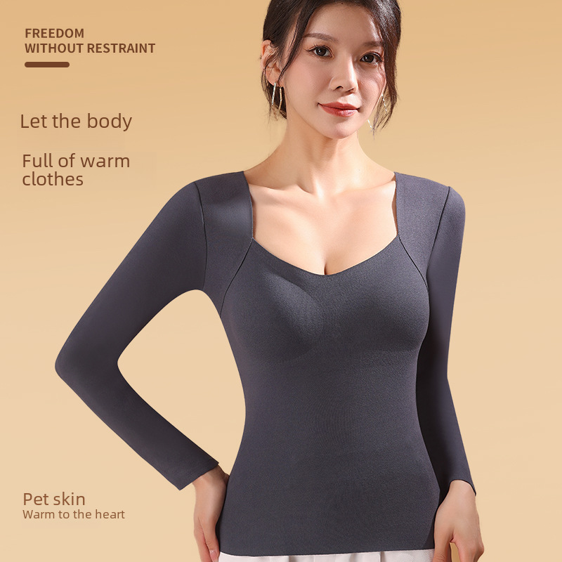 Autumn and Winter de Velvet seamless thermal top with chest pad high elastic constant temperature long sleeve thermal underwear women's plus size bottoming shirt
