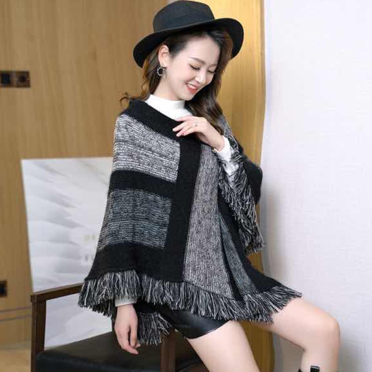 | nameOriginal | Autumn and Winter Ethnic Style Poncho Striped Knitted Pullover Sweater Tassel Pullover Coat Women's Long Poncho |