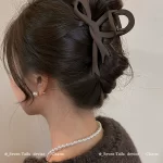 | nameOriginal | Autumn and winter frosted bow hair clip for women 2023 new high-end large temperament shark clip on the back of the head. |