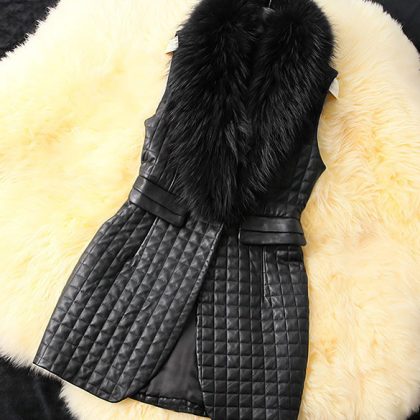 | nameOriginal | Autumn and Winter Imitation Fur Vest Women's Korean Style Slim Fit Mid-length Imitation PU Leather Sleeveless Vest Vest Imitation Fox Fur Collar |