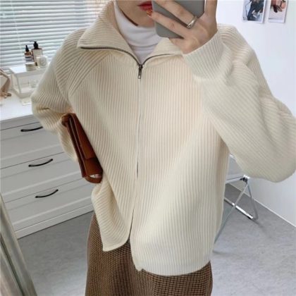 | nameOriginal | Autumn and Winter Lazy Style High Neck Thickened Knitted Cardigan Korean-style Instagram-style Zipper Design Niche Lapel Sweater for Women |
