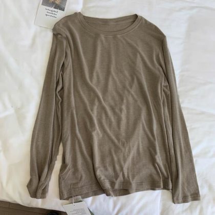 | nameOriginal | Autumn and Winter mask long-sleeved bottoming shirt for women 2023 new solid color inner wear plus size wide loose shoulder T-shirt top all-matching |