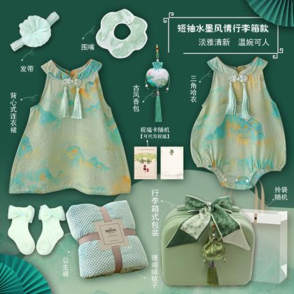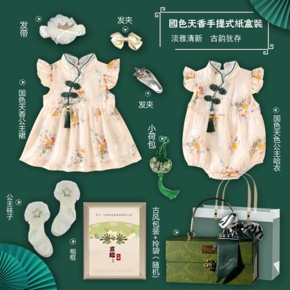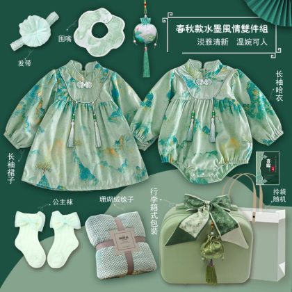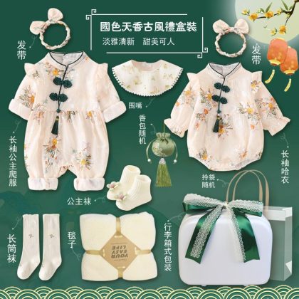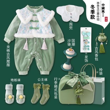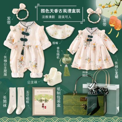 | nameOriginal | Autumn and Winter National style cheongsam newborn children meeting gift box baby girl fresh green series newborn baby Full Moon gift |