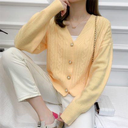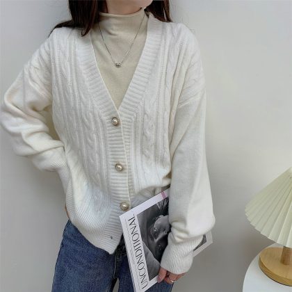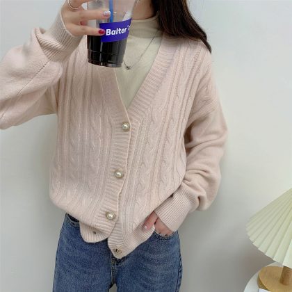 | nameOriginal | Autumn and Winter New Cashmere V-neck Versatile Twist Sweater Women's Korean-style Lazy Loose Cardigan Jacket |