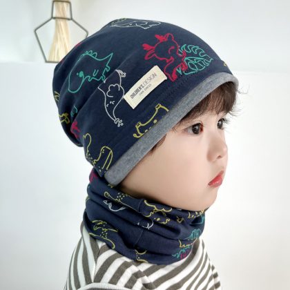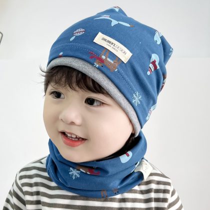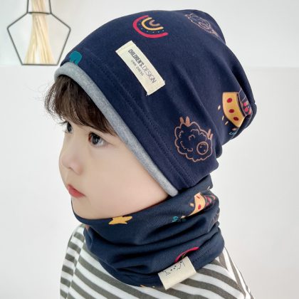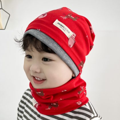 Autumn and Winter new children's contrast color pile hat baby windproof scarf 2-piece set Boys and Girls cute knitted pullover hat