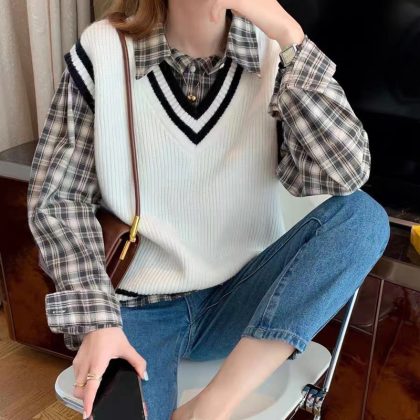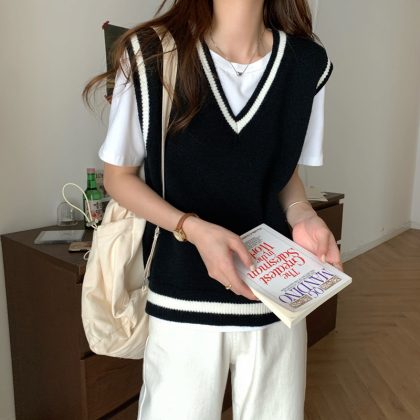 Autumn and Winter New College Style Knitted Vest Women's Loose Simple Lazy Stacked All-match Sweater Vest Top