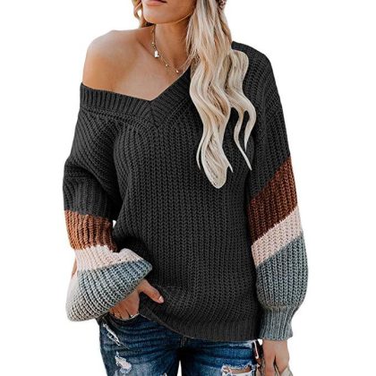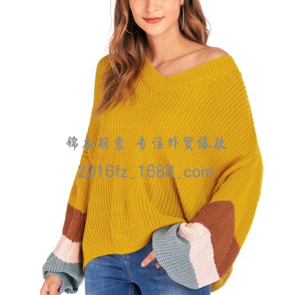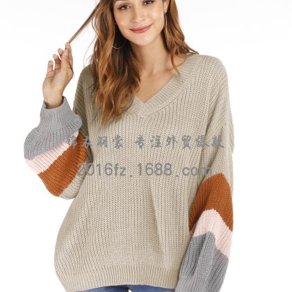 | nameOriginal | Autumn and Winter new European and American Foreign Trade Amazon cross-border V-neck sweater plus size loose stitching lantern sleeve sweater |