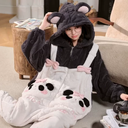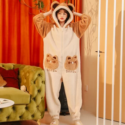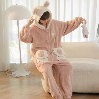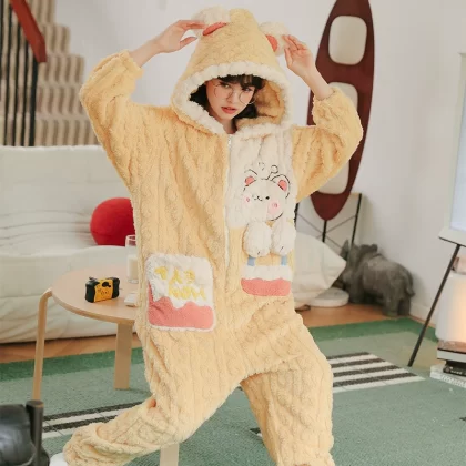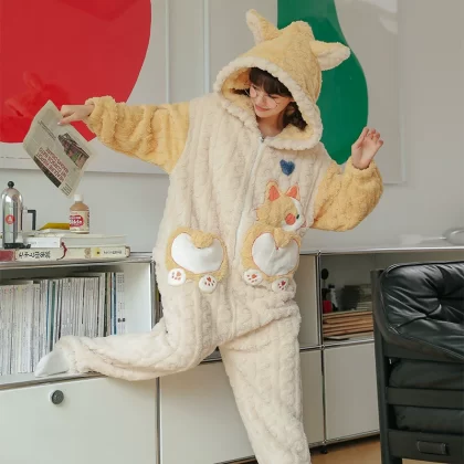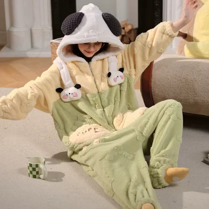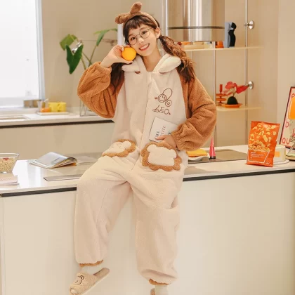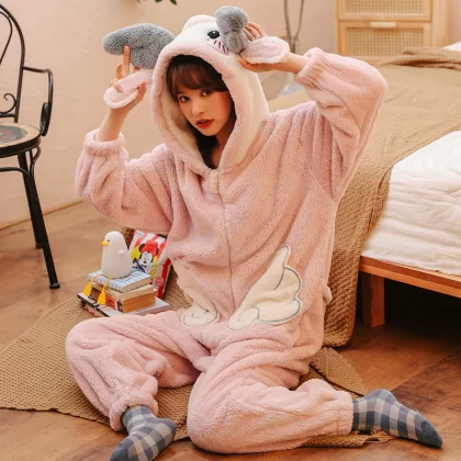| nameOriginal | Autumn and winter new one-piece coral velvet pajamas for women in winter thickened and velvet Korean style cute flannel home clothes set |