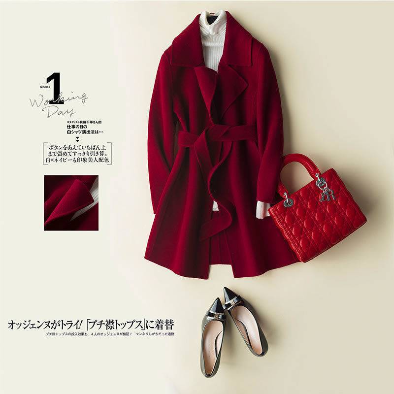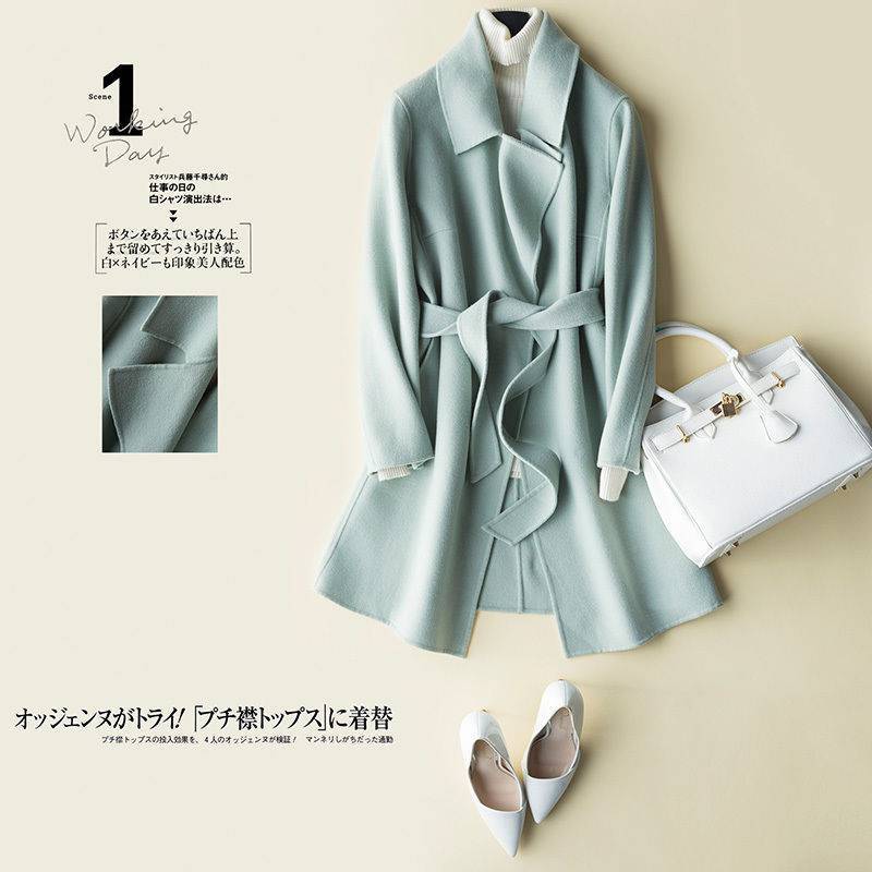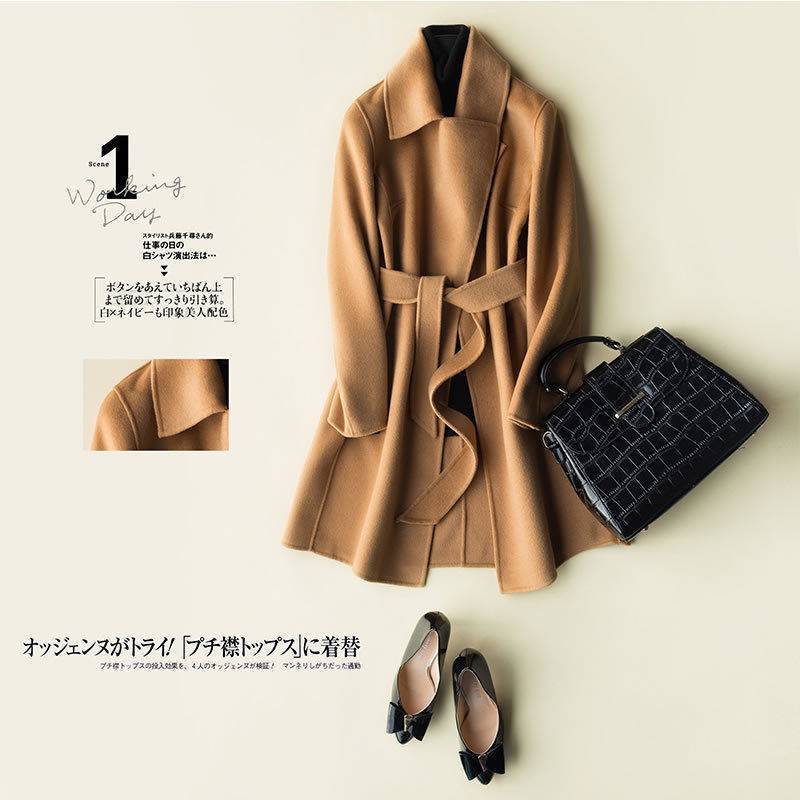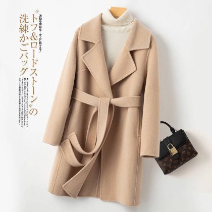 | nameOriginal | Autumn and Winter new solid color mid-length double-sided woolen coat lace-up coat for women |
