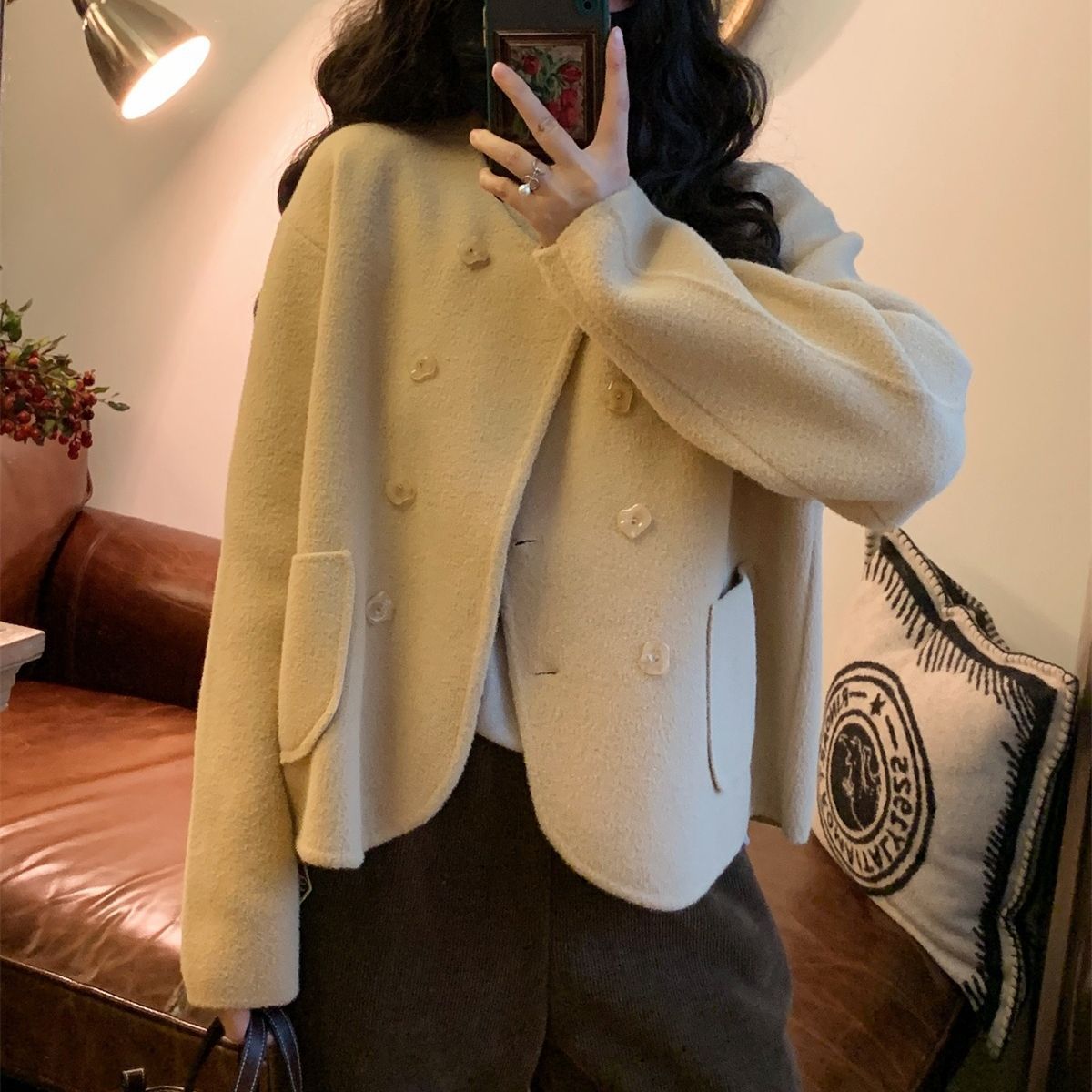| nameOriginal | Autumn and Winter new style imitation double-sided woolen Korean style round neck long sleeve double-breasted loose Chanel style short knitted cardigan women's clothing |