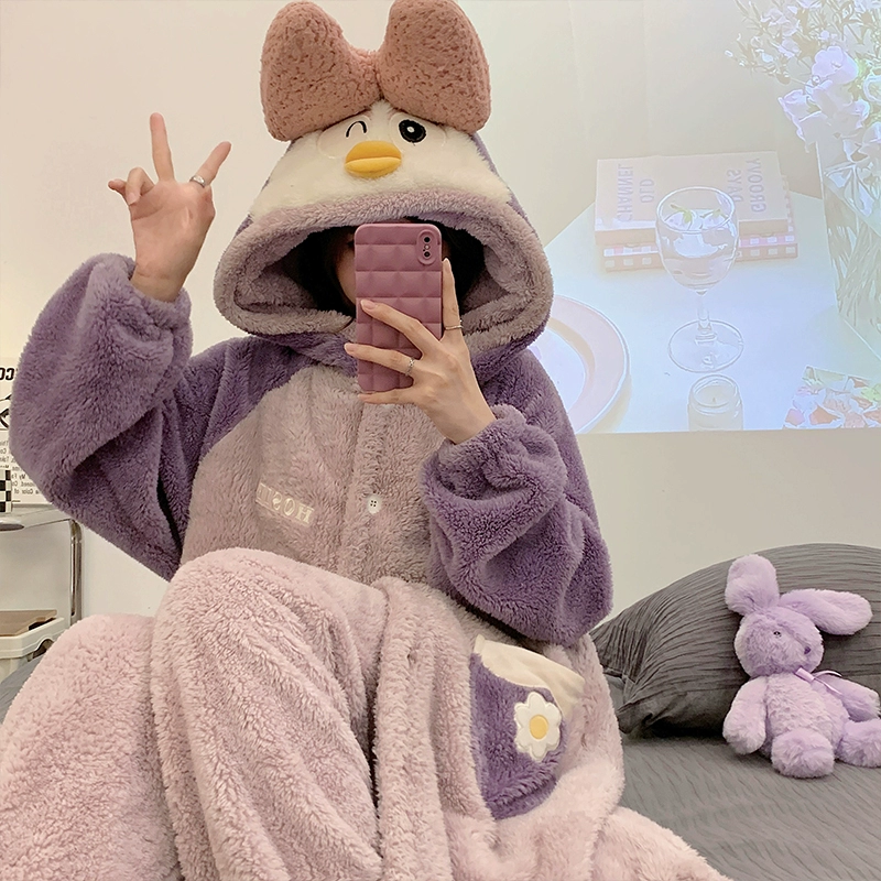 | nameOriginal | Autumn and winter nightgown for women thickened and velvet coral velvet long cute cartoon pajamas flannel home wear set |