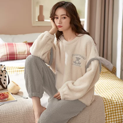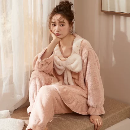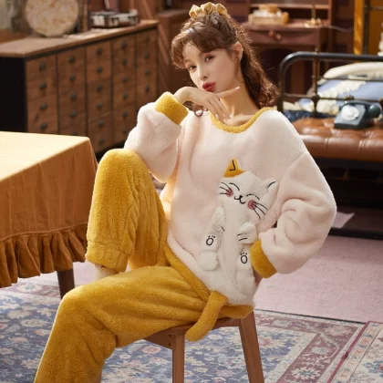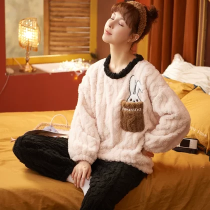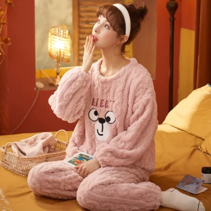 | nameOriginal | Autumn and winter pajamas for women, cute coral velvet, thickened and warm, Korean style flannel suit, winter home clothes |