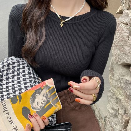 الخريف والشتاء بلون طويل الأكمام قاعدة قميص سترة المرأة الجديدة نصف الياقة المدورة الداخلية سليم صالح سليم صالح كل مباراة سترة علوية
