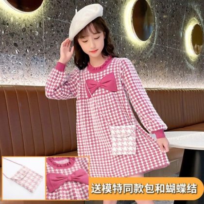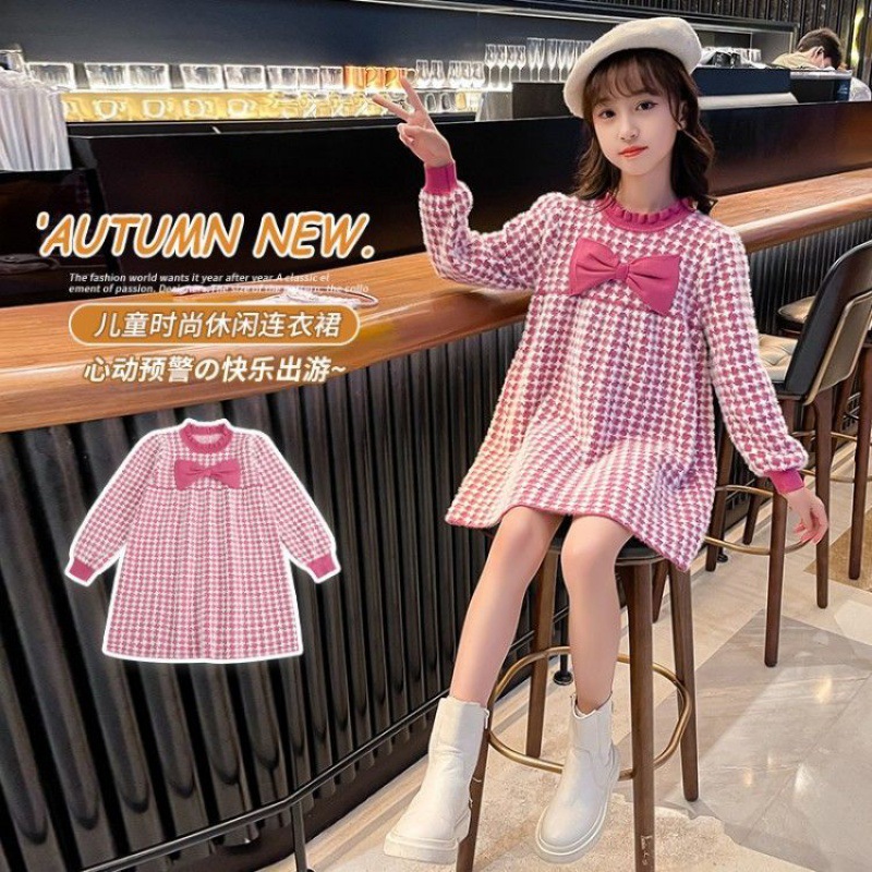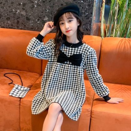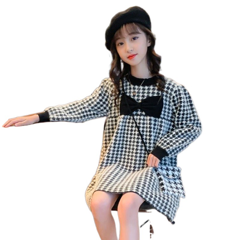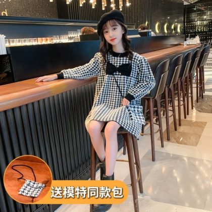 | nameOriginal | Autumn girls' preppy style plaid dress knitted sweater dress medium and big children's Chanel style mink velvet no lint no camel |