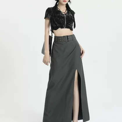 | nameOriginal | Autumn hot girl sexy slit hip-covering long skirt suit |