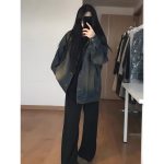 الخريف Ins الرجعية الدنيم معطف المرأة 2024 الخريف تصميم جديد حس فضفاض الدهون M بلوزة الدنيم غير رسمية