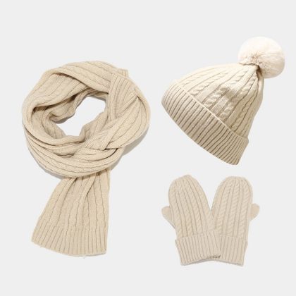 | nameOriginal | Autumn New Twist Knitted Hat Scarf Gloves Three-piece Set Fashionable Outdoor Warm Cold-proof Windshield Hat Set |
