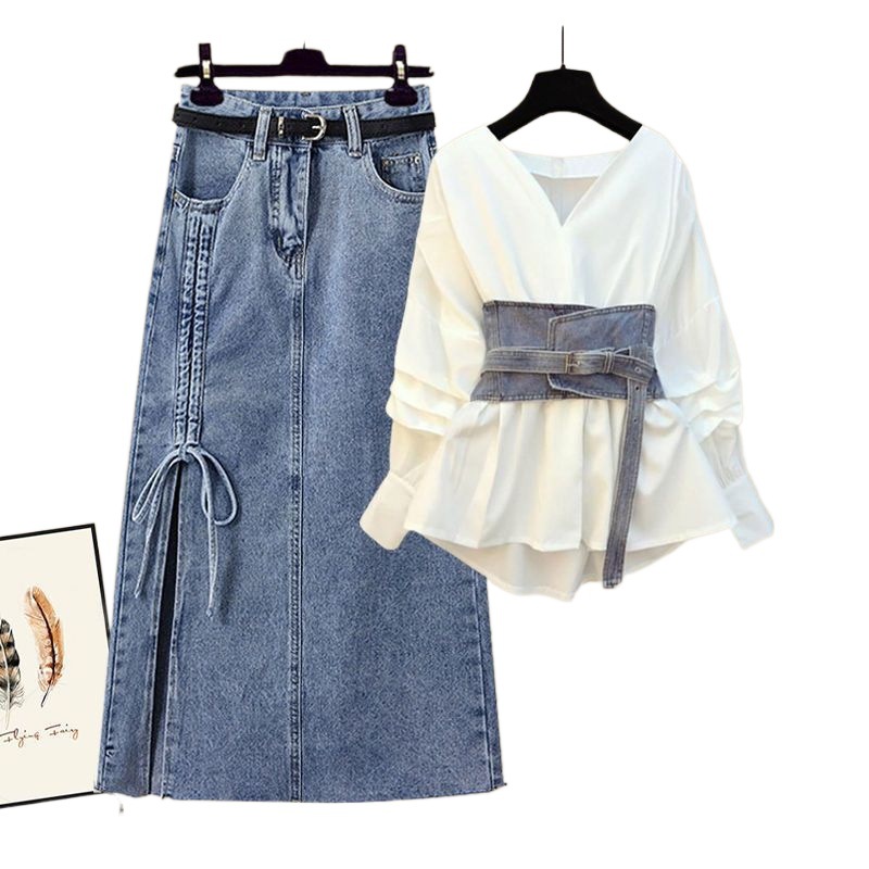 | nameOriginal | Autumn suit Women's 2024 New plus size Women's Design Sense Niche Waist Shirt Denim Skirt Two-piece Set |