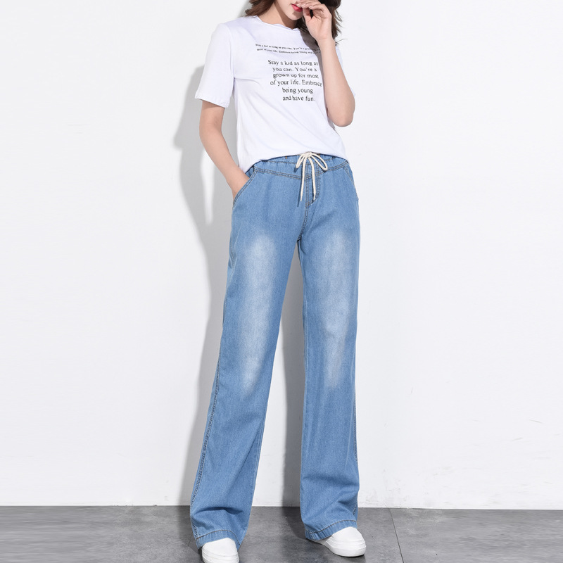 | nameOriginal | Autumn thin elastic high waist drawstring wide leg jeans for women 2023 spring and summer New straight mop long pants |