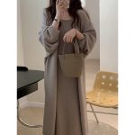 | nameOriginal | Autumn wear a set of fashionable French temperament lazy wind slimming flesh-covered knitted cardigan dress two-piece suit |