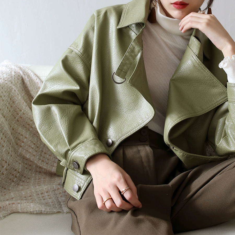 | nameOriginal | Avocado Green 2024 Spring and Autumn New Korean Style Loose Leather Jacket Motorcycle PU Leather BF Small Leather Jacket Women's Short Jacket |