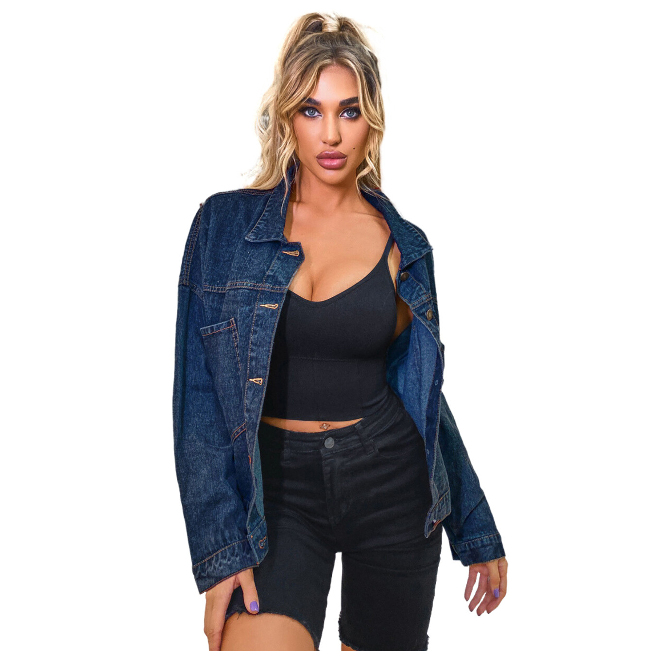 | nameOriginal | B- 20056 Amazon European and American women's clothing fried flower washed blue short loose casual Denim coat jacket |