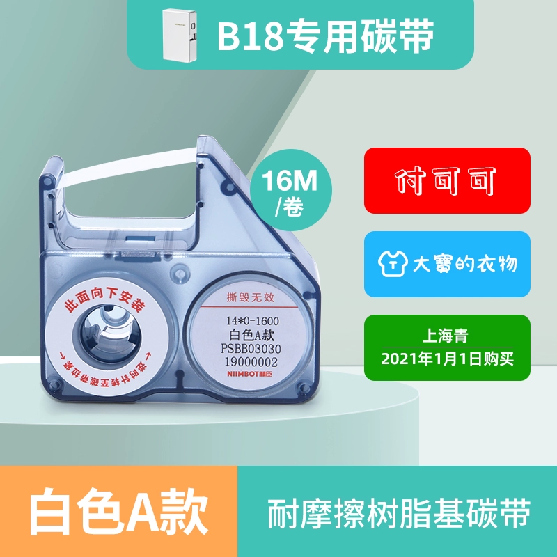 | nameOriginal | [B18 Ribbon] Jingchen label printer special ribbon black red background white characters see-through bottom blue characters green characters wear-resistant alcohol-resistant resin-based carbon ribbon 16m long |