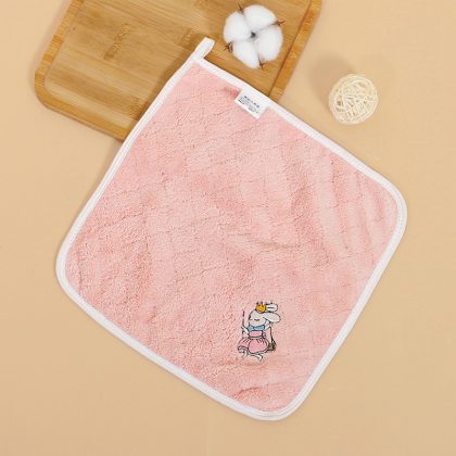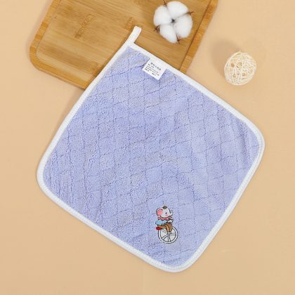 Baby cartoon embroidery saliva towel face towel coral fleece children's face towel super soft small square baby handkerchief