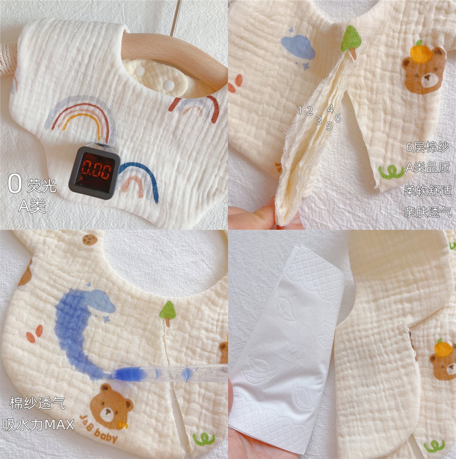 Baby Cotton Gauze Bib Slippery Towel Boys' Baby Absorbent Anti-Spitting Bib Newborn Girls' Scarf Breathable