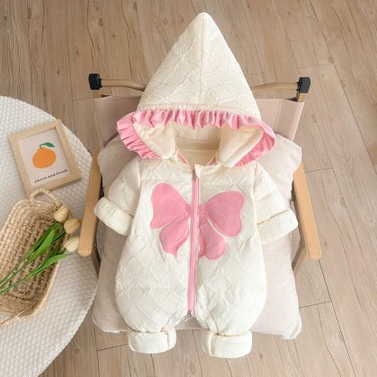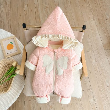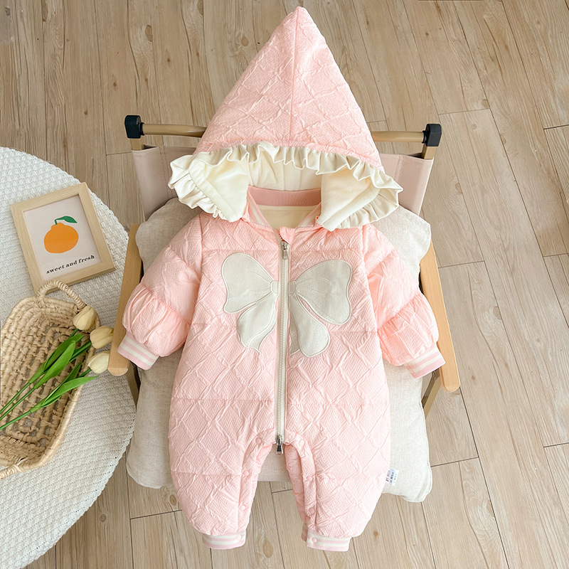| nameOriginal | baby down jacket winter jumpsuit newborn baby girl plus velvet coat princess warm going out climbing duck down |