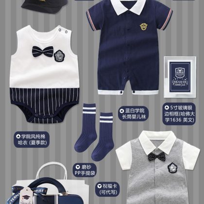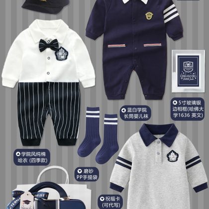 Baby Gift Box college style suit new born baby boy spring, summer, autumn and winter blue one month old one hundred days old