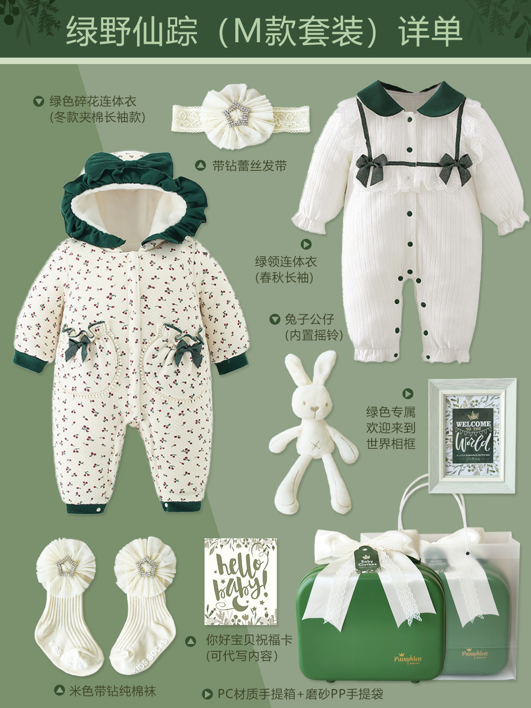 طفل هدية مربع موري نمط فتاة طفل الصيف رقيقة الملابس الخضراء مجموعة شنطة هدايا كبيرة البدر مائة يوم سنة واحدة هدية