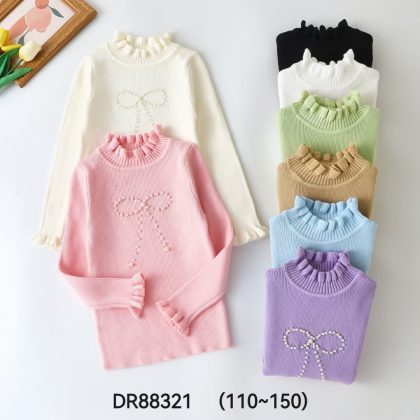 | nameOriginal | Baby Girl's Knitted Base Shirt New Children's Solid Color Wood Ear Collar Slim Fit Butterfly Beaded Sweater Top |